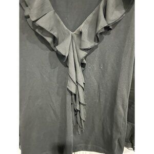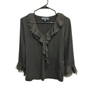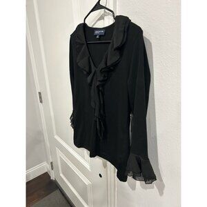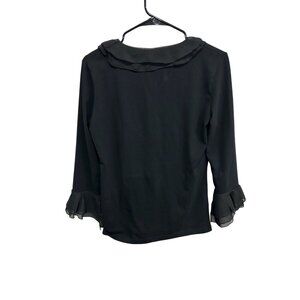 Jones New York Ruffled V-Neck Blouse Black Sz Medium 3/4 Sleeve Whimsigoth