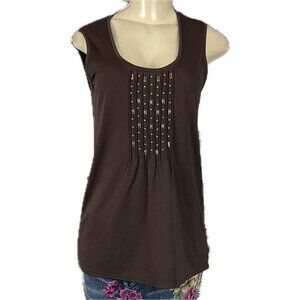 ITEM: Jones New York S Brown Beaded Pleated Front Scoop Neckline Sleeveless Top