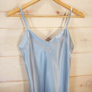 Jones New York Short Slip Dress Size S Lingerie Satin Silky Ice Blue-Gray Lace