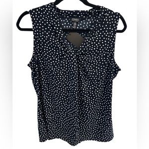 Jones New York Signature Black White Polka Dot Sleeveless Top Blouse M
