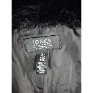 Jones New York Signature Black Women's Faux-Fur Collar Quilted Long Vest L NWOT