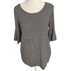 Jones New York Signature Black and White Striped Short Bell SleeveTop Size M