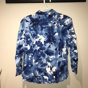Jones New York Signature Blue Floral Blouse