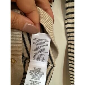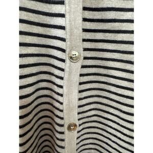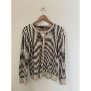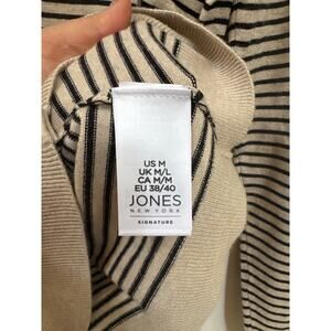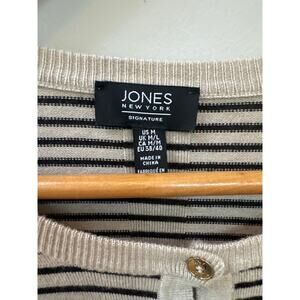 Jones New York Signature Cardigan Button Up Tan Black Stripe Basic Minimalist