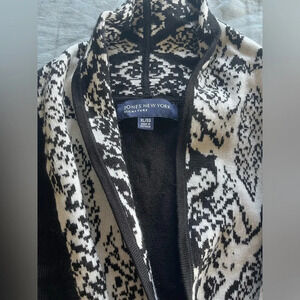 Jones New York Signature Cardigan Size XL Black with White Shawl Collar