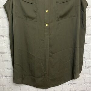 Jones New York Signature Collared Button Down Sleeveless Blouse