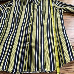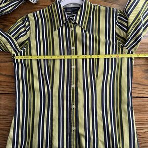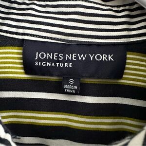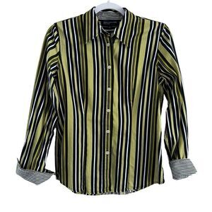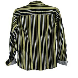 Jones New York Signature Cotton Blue/Green Striped Blouse Flip Cuff Women’s S