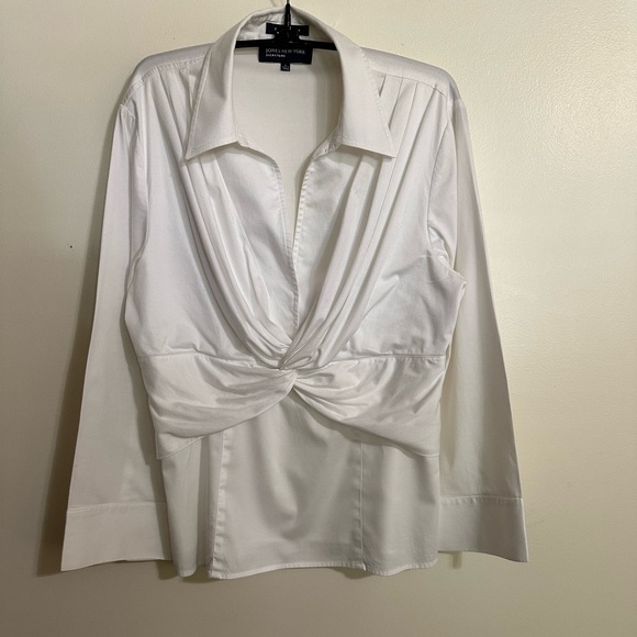 Jones New York Signature Cotton Stretch White Twist Knot 3/4 Sleeve Top, Size L