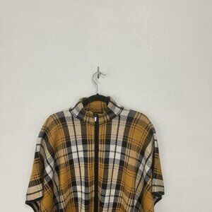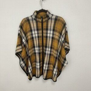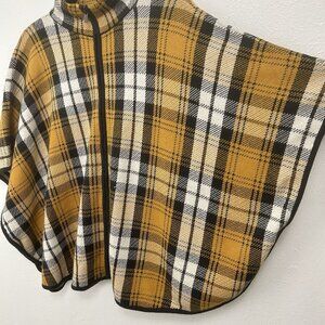 Jones New York Signature Dolman Sleeve Jacket Poncho Plaid Gold Zip Front L / XL