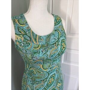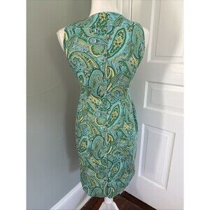 Jones New York Signature Dress Stretch Paisley Sleeveless Sheath Aqua 2P
