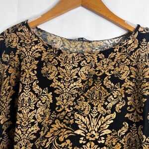 Jones New York Signature Gold Floral Damask 3/4 Sleeve Cotton Blouse Size 1X