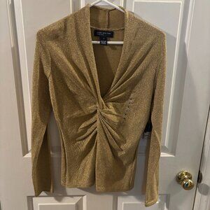 Jones New York Signature Gold Metallic Women's Knot Top Blouse ~ Small ~ NWT