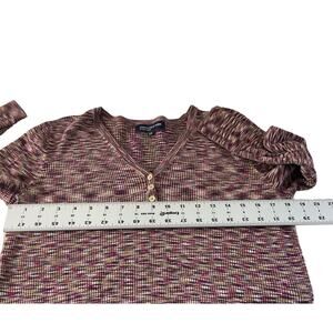 Jones New York Signature Henley Sweater Women's Large Viscose Nylon V-Neck Long Sleeve Multi-Color