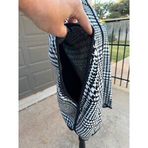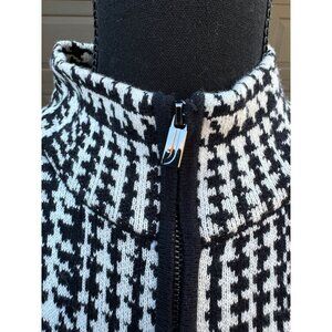 Jones New York Signature Houndstooth Black White Knit Poncho Zipper Closure S/M