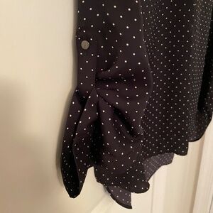 The sleeves can be worn down or buttoned up to a 3/4 sleeve