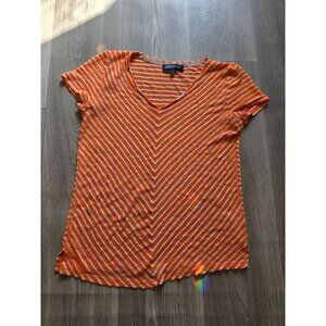 Jones New York Signature Orange & White Linen Striped V-Neck T-Shirt M