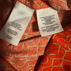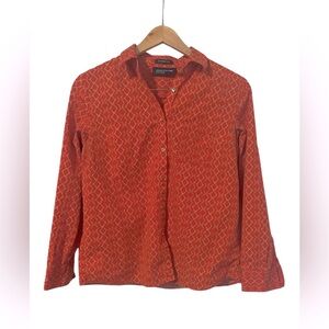 Jones New York Signature Patterned Persimmon Orange Button Down Shirt Stretch