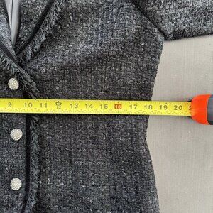 Jones New York Signature Women Petite 12 Black Metallic Tweed Cardigan Jacket Blazer - Rhinestone Button Up Shacket Suit Jacket