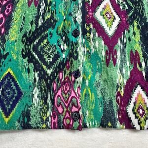 Jones New York Signature Petite Large Boho Printed Cardigan Sweater Green Purple