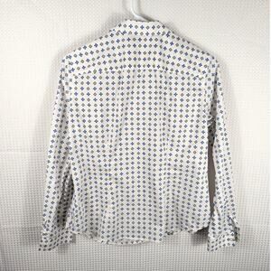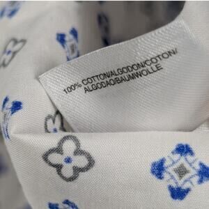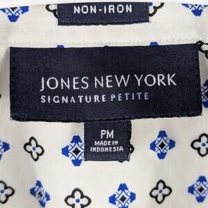 Jones New York Signature Petite Medium Non Iron Shirt Blue Print Cotton Blouse