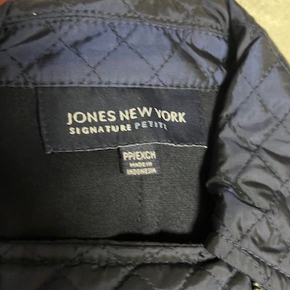 Jones New York Signature Petite Navy Blue Quilted Zip Up Jacket Small