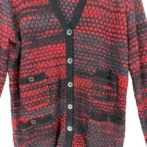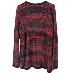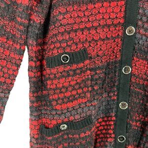 Jones New York Signature Red Black Textured Knit Cardigan Sweater XL Button