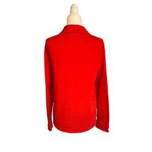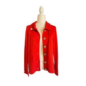 Beautiful red cardigan by Jones New York Signature, featuring gold-tone buttons and ribbed detailing. A timeless, polished layer for fall, winter, office wardrobes, or holiday looks.