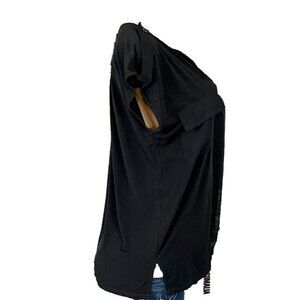 ITEM: Jones New York Signature S Black Flap Detail V-Neck Pockets Short Sleeve Blouse