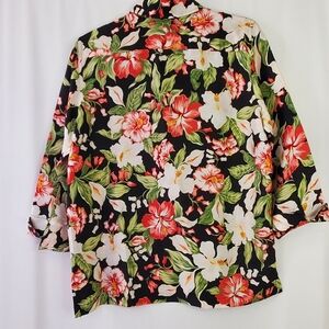 Jones New York Signature Size M 100% Silk button front 3/4 Sl blouse