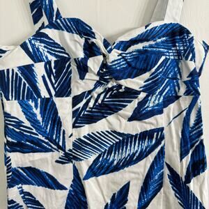 Jones New York Signature Stretch Blue White Tropical Palm Leaf Dress Size 4