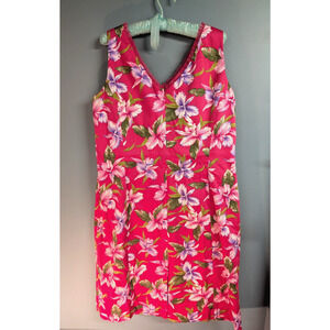 Jones New York Signature Stretch Pink Floral Sheath Dress 16W Lace V Neck
