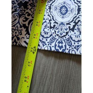 • Intricate navy and white pattern