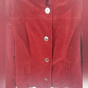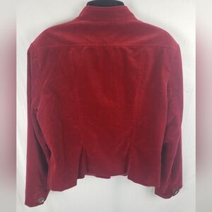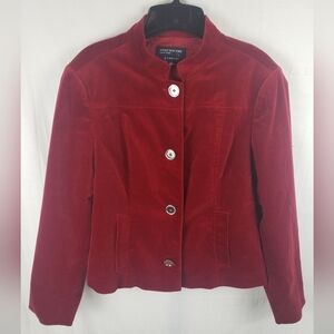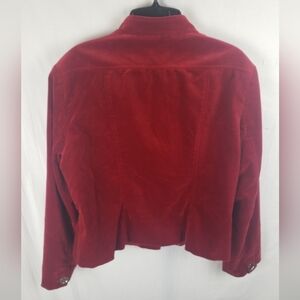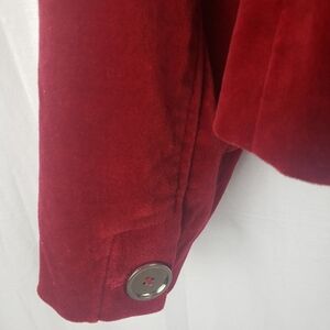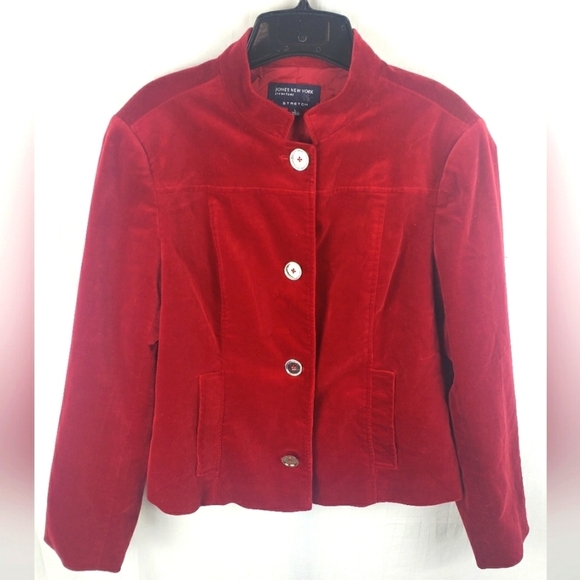 Jones New York Red Velvet Long Sleeve Big Button Mock Collar Holiday Jacket Sz L in Great Condition
