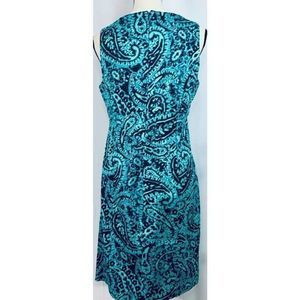 Jones New York Signature Stretch Womens Sleeveless Faux Wrap Empire Waist Turquoise Green & Navy Dress Size 8
