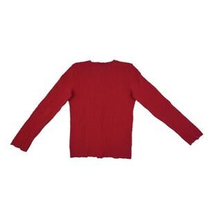 Jones New York Signature Sweater Cardigan Womens Medium Red Fine Gauge Cable Knit Gold Buttons