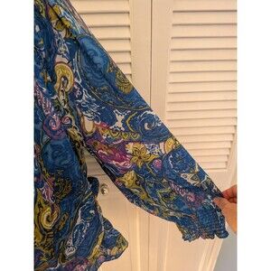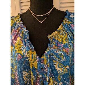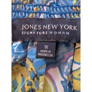 Jones New York Signature Top Women 1X Blue Multi Paisley Blouse Peplum Bohemian