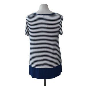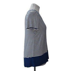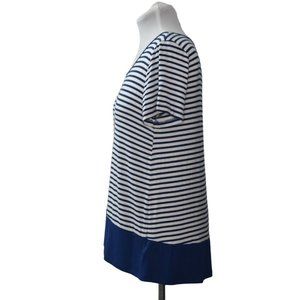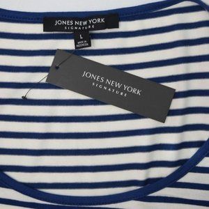 Jones New York Signature Top Womens L Eliptical Hi Low Blue White Stripe T-Shirt