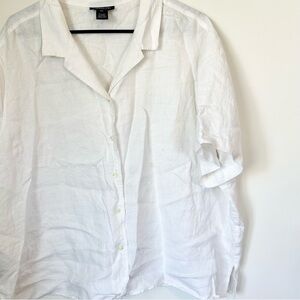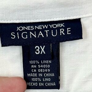 Jones New York Signature White Linen Short Sleeve Button-Up Shirt - Size: 3X