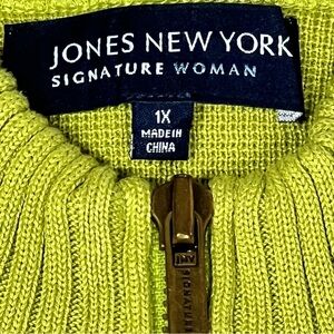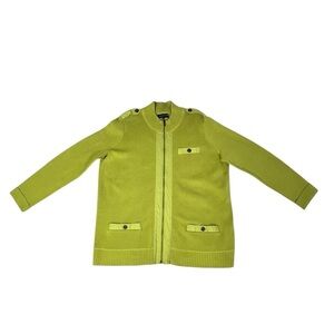 Jones New York Signature Woman Lime Green Front Zipper Cardigan Sweater Size 1X