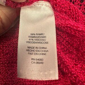 This Jones New York open-front cardigan offers a professional look with its vibrant pink hue and textured knit. The blend of ramie and viscose ensures comfort and breathability. Ideal for layering, it brings a touch of elegance to office or casual ensembles.