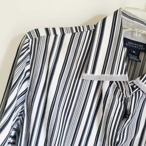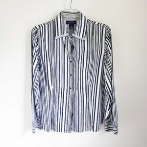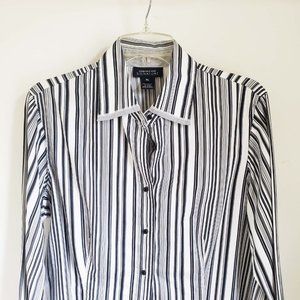 Jones New York Signature Women's Black Pin Button Down Shirt Top Blouse