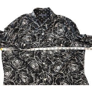 Jones New York Signature Womens Black & White Rose Print Button-Up Shirt XL