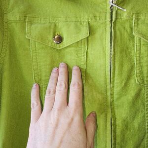 preowned very good condition Jones New York Signature Womens Bright Green Full Zip Corduroy Jacket Sz M Trendy color and corduroy with front pockets!