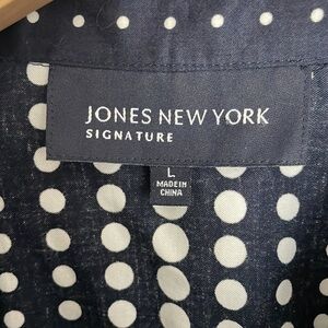 Jones New York Signature Women’s Geometric Polka Dots Blouse Navy/White L