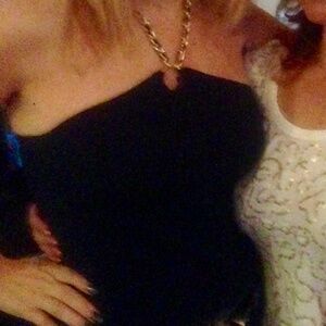 Jones New York Signature Womens Halter Top L Stretchy Keyhole Front w/gold chain