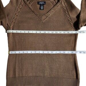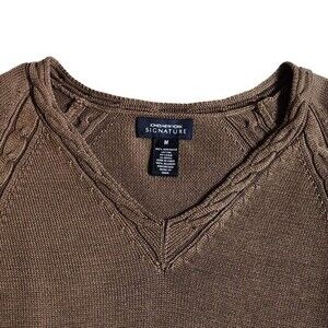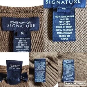 Brand: Jones New York Signature. Occasion: Casual. Any. Size Type: Regular. Size (Women's): M. Material: 100% mercerized cotton. Neckline: V-neck. Sleeve Length: Long sleeve. Color: Brown.