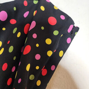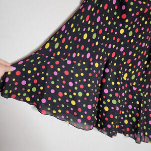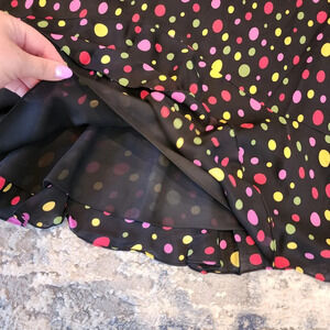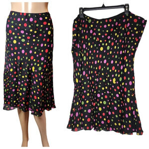Jones New York black and multicolored polka dots midi skirt. ruffle bottom hem.