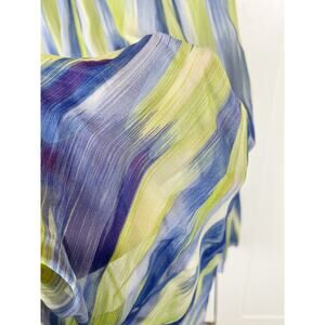 Jones New York Silk Water Color A-Line Flare Midi Skirt in Blue & Yellow Size XL