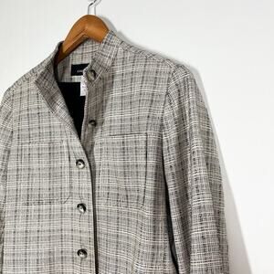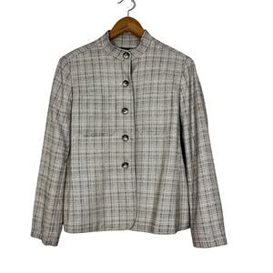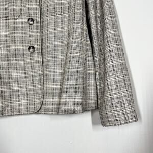 Jones New York Women’s Silk /Wool Blend Tweed Blazer/Jacket in Gray and White Plaid; Two Chest Pockets; Long Sleeves