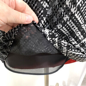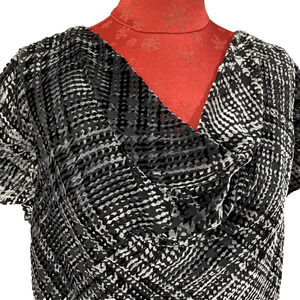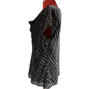 Jones New York Size 12 Black & Silver Top Blouse Velvet Burnout Draped Neckline